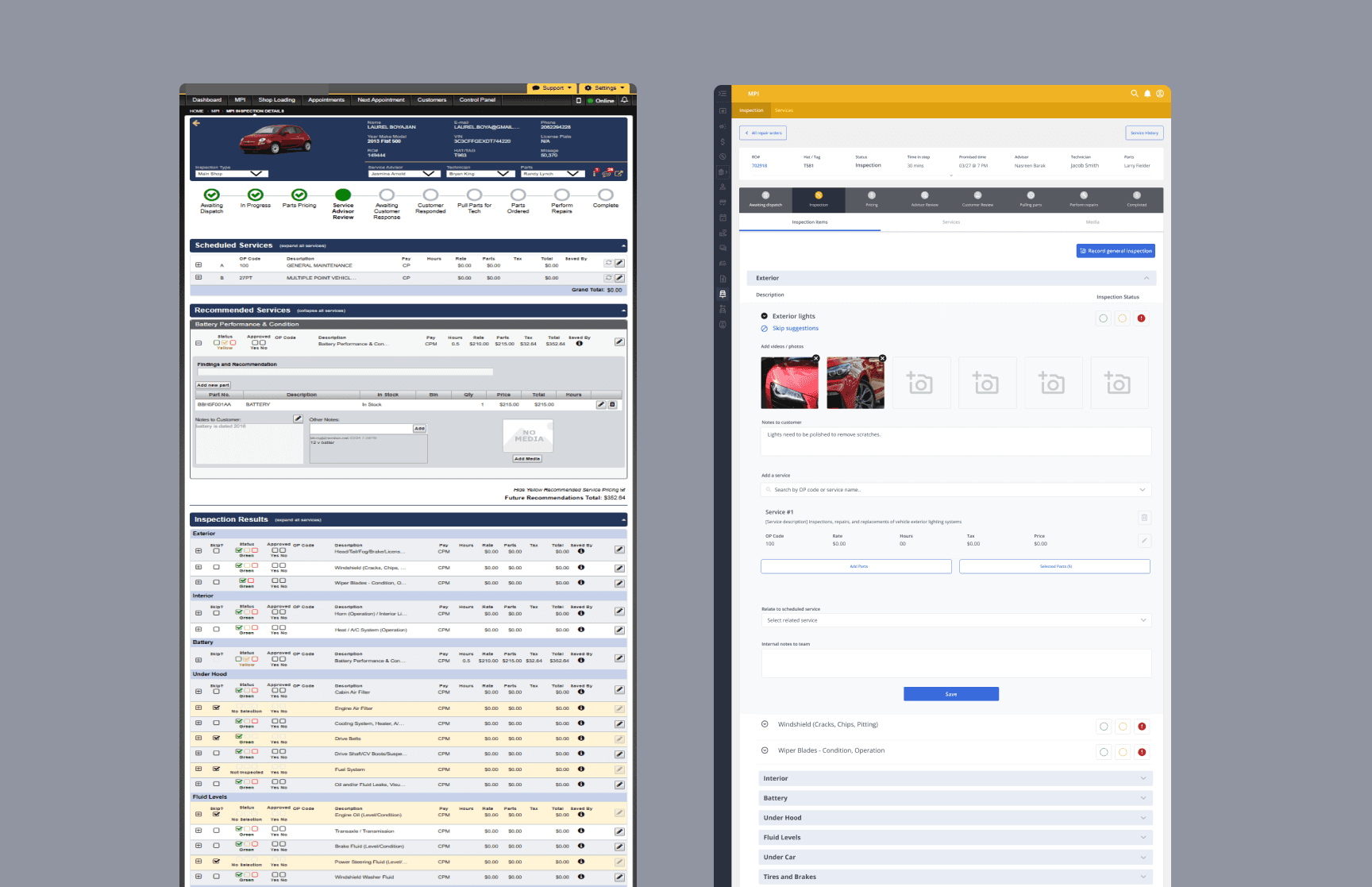 Multi-Point Inspection (MPI) tool is used by automotive technicians and service advisors across hundreds of dealerships in the US. The existing system was powerful but outdated; crowded screens, dense tables, and inconsistent interactions made it difficult for users to complete inspections efficiently and confidently.